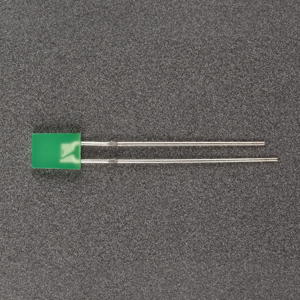 Поставка под заказ от 5000 шт. Выводной прямоугольный светодиод, 2×5×7 мм, зеленая диффузная линза. Цвет свечения зеленый (570 нм). Угол излучения 130°. Сила света Iv=10 мкд при If=20 мА. VF=1.8-2.4 В. Рекомендуемый постоянный рабочий ток <16-17 мА.