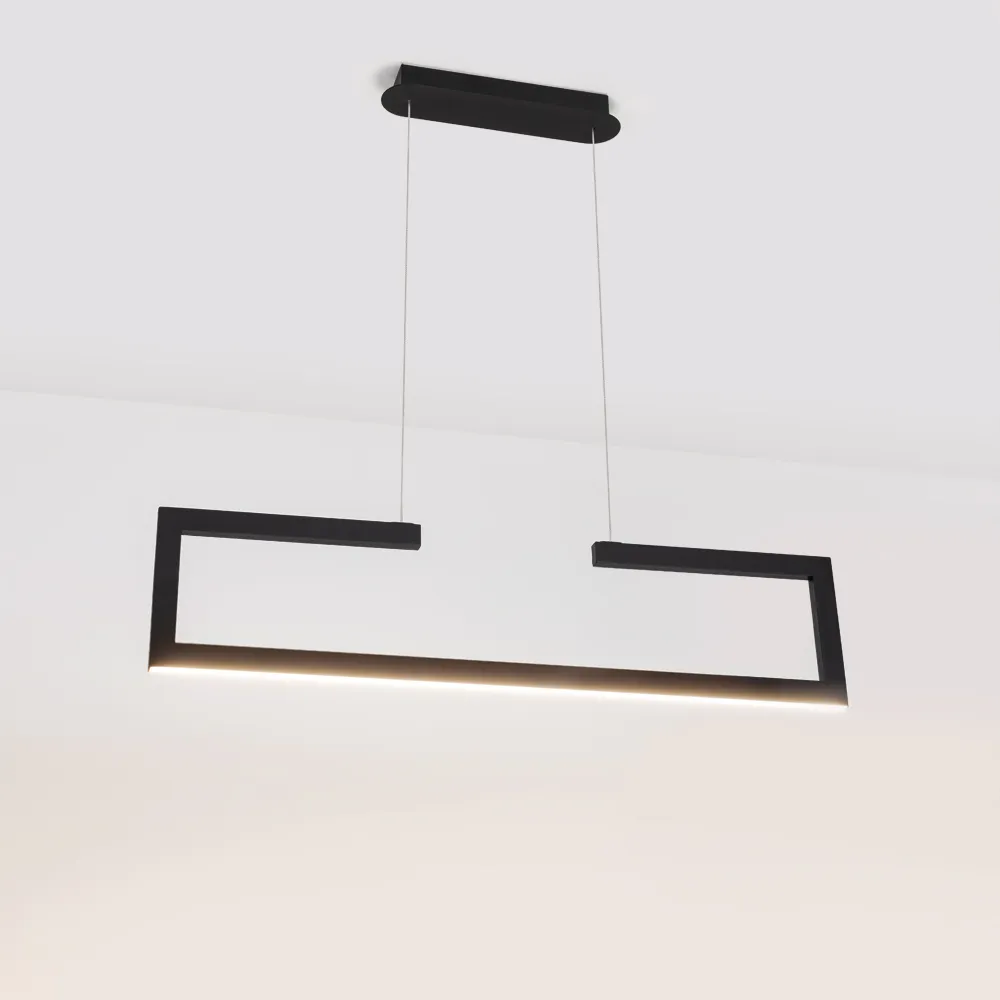 Поставка под заказ от 50 шт. Подвесной светильник 20Вт, черный корпус, материал алюминий. Цвет ТЕПЛЫЙ БЕЛЫЙ 3000K, св.поток 655лм, CRI(Ra)>80, угол 120°. Размер 770x70x1200мм. Питание AC220-240, 20Вт.