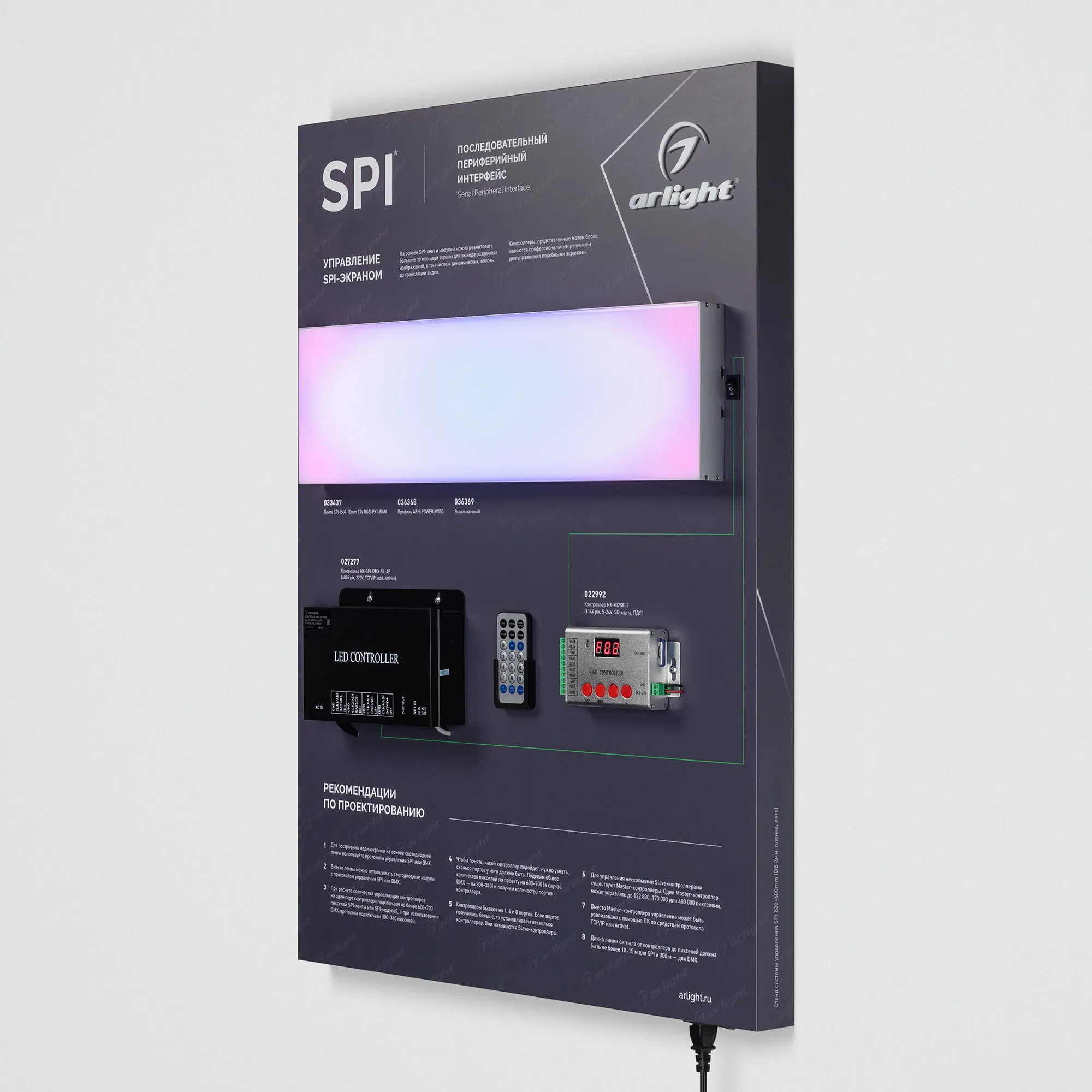 Наши специалисты знают все о продукции Arlight и с радостью помогут Вам выбрать комплектующие к товару "Стенд Системы Управления SPI 830x600mm (DB 3мм, пленка, лого) (Arlight, -)", или другие товары из раздела "Управление светом".