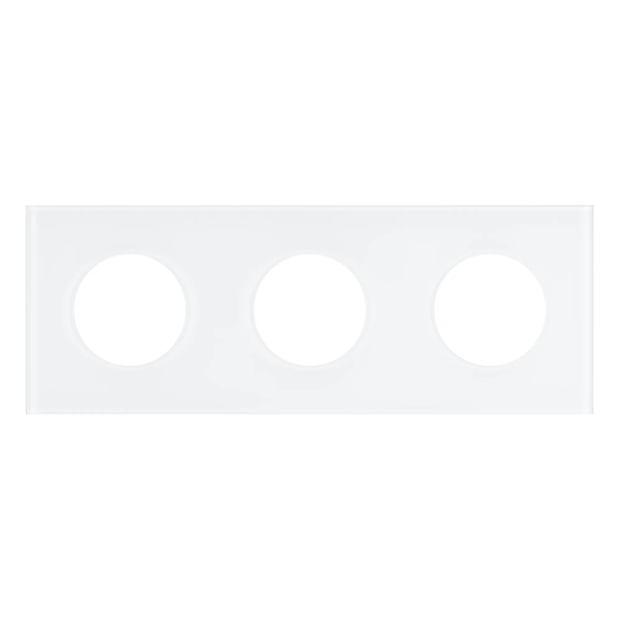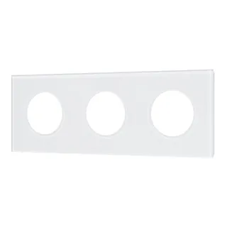Рамка стеклянная на 3 поста, под встраиваемый механизм. Вырез под функциональную часть круг. Цвет - белый. Ориентации монтажа - горизонтальная.