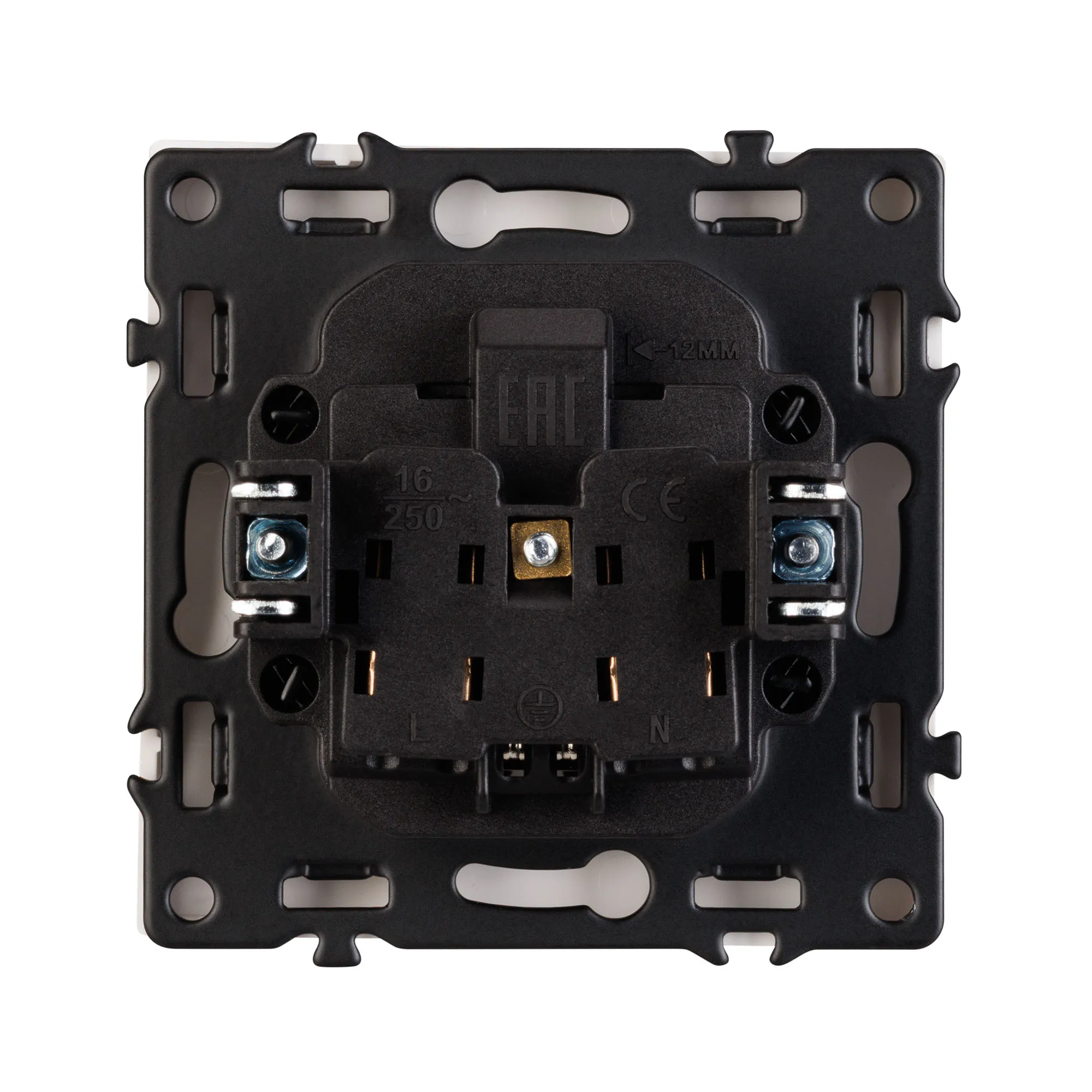 Механизм розетки с заземлением на 1 пост. Цвет - белый, с Soft-Touch покрытием. Без фронтальной рамки. Уровень пылевлагозащиты IP20. Розетка устанавливается в стандартный подрозетник круглого сечения диаметром 60мм.